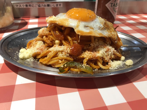 Read more秋葉原にある系列店には以前に勤務先の関係で何回も通ってたお店が、柏にあることを見つけて今日は土曜日のお昼に来ました。 お店の大きさは大きく席も4人席が3卓、2人席が2つ、カウンターが8席ある。 お店に入ると直ぐ右側に券売機があり、前の人が購入中の時にはお店の入口に待つ状態なのでドアが空きっぱなしなので、少し下がって待つことしばらく、前の人は食券を購入したにも関わらず離れません。 ようやく自分が食券を購入する順番になり券売機の前に移動しました。 外の看板にあったナポリタン並目玉焼きを券売機で探してもなかったので、ナポリタン並(¥720)と目玉焼き(¥100)を購入した。 何処に座ろうかと探してたら店員が食券を渡せとしつこいので渡してから一番奥のカウンター席に着席。 ここのシステムが面白い。(調味料が書かれているがどこにも無い)また、お水は自分で給水機からコップに入れる。 エプロンを見つけてセットしてまち状態。 しばらくして商品が着丼。 店員が調味料はいかがですか?と聞かたので、チーズとタバスコをお願い。 お願いした調味料が到着したので、チーズをたっぷりとふりかけて、タバスコを全般に思いっきりぶっ掛けて、いざ食す。 懐かしのナポリタンです。目玉焼きを潰して全体に広げます。一気に食べました。 久しぶりのパン...
