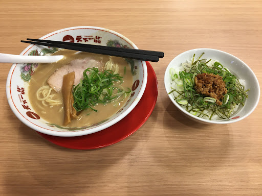 2020.12.26 麺8 チャーシュー丼定食こってりかため 汁9 980円 具5 総合9/10点 相変わらずチェーン店なのに圧倒的安定感。久々天一に感動。 【麺】 今回で気づいたけど冠水が多めな麺な気がする。加水率は高いのに冠水の香りだけガツンと効いている。それがまたクリーミー濃厚スープと大変良く合い病みつき度半端ない味を醸し出している。この冠水麺も味の半分を担ってるレベルと思われる。ちなみに今回量が異様に少なく感じた。普通の店の8割り程度か?。替え玉メニューにないので最初から大盛り頼む方が良さそう。 【汁】 そして相変わらず圧倒的によくできているスープ。骨の髄まで感じるど濃厚な鶏感になめらかクリーミーな野菜のコクが素晴らしい。この濃厚さにまた冠水風味が恐ろしく合う。 【具】 チャーシューは薄さが悲しい。味もそこそこ。スープの引き立て役ぐらいの感じ。 【チャーシュー丼】 チャーシュー丼として他店と比べると実に悲しい具合。チャーシューと言うよりカラカラ気味のそぼろ肉に辛めを味付けをしたもの。時間が悪かったのか葱は乾いてて海苔は香りがしない。そこらの定食屋レベルだけどもスープかけるとなんでもうまくなるというカオス。逆に下手なチャーシュー丼よりこのスープを活かす意味では悪くない、ピリ辛がそこそこにマッチ。チェーンで200円ぐらいだからこれ以上求めるのも欲張りすぎるところではあるけども。 【チャーハン】 至って普通。あえて言うならオイリーなのになぜかしっとり。しっとり好きにおすすめ。ちなみにスープもかけてみたけど、なんか相殺して味が消える謎現象が発生する。 【辛子味噌・にんにく薬味】 今回ダークホースの薬味。これはビビった。 まず辛子味噌は大豆風味の強い味噌がバリッと効いてて、これがまたスープとよく合う。辛さピリ辛ぐらいで、唐辛子の風味も効いてて、クリーミースープをより引き立ててくれる。 にんにく薬味もまさかの真っ赤な唐辛子入りで、これも唐辛子の風味ににんにくの香りと甘さがよく出ていて、これもまたスープに良く合い傑作。これらを駆使すると複雑なコクが楽しめさらに格の高いラーメンに昇華している。これは頼まない方が損。可能なら替え玉で途中から味変えで楽しみたい。 【総評】 こってりラーメン以外恐ろしいぐらいなんもかんも普通な味の店を再確認。そしてこってりラーメンだけ異常なぐらい一級品というのも再確認。うますぎるスープは米ともヤバいぐらい合う。日本一ゴハンを美味しく食べれるスープかもしれない。ちなみに小ライスは150円取るだけあって小さすぎるほどではない。 なのでトッピングはスープ増しと大ライ...
