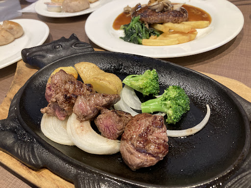Read more日曜日ディナーでお邪魔しました。 ディナーセットをオーダーしました。 びっくりしたのが、ライスもパンも両方選べて食べ放題ということです。私はそんなに食べられませんが、食べ盛りのお子さんいるご家族には優しいですね。 パンも6種類くらいありました。 スープも2種類くらいあったと思います。 またサラダバーも付いていてお得感満載です。 ステーキも美味しくいただきました。
