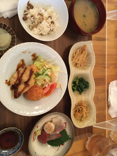 Read more写真撮るの忘れて食べてしまって慌ててパシャリ。色んなおかずがあって、それぞれきちんと味付けされてて美味しかったです。これはこうして作ってあるのかな?と考えながら食べるのも楽しかった。あずき茶が初めての味わい、香りでした。優しい美味しさ。また行きます。 日替わりまめ御膳1100円。大満足。駐車場は隣の敷地がコインパーキング。二人がけテーブル席2、4人掛け1、カウンター4?5?の小さいお店です。夜の日替わり定食もあるので、それも...