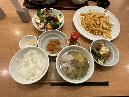 Read more晩ご飯のために奥さんと利用しました。 今回少し面白い注文をしました。メインディッシュのためのライスセットの中に(と思っている)豚汁のセットがあり、それに単品メニューのカキフライ、そしてサラダを注文しました。 奥さんは和定食のメインディッシュにシャケを選択して、フライポテトも注文しました。 豚汁は美味しかったです。年寄りなので、そのボリュームで十分です。その頼み方、気に入りました。 少し驚いたのは、食事を運んでくるのはロボット。そしてレジも無人レジです。時代は変わりましたね。 きっとまた...