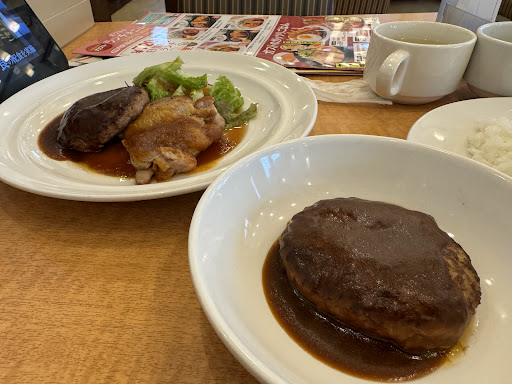 ❗モーニングの時間は食べるものが少ない❗じじい、ババア、と、百姓と土建屋のたまり場・‼️チーズインハンバーグは美味しい‼️ R7,2,8,最近改装したみたいで久しぶりに訪問しました メニューも少し変更されていて内容も豊富になっていて、から好しの唐揚げもモーニングメニューに入ってました。 配膳もロボット君が行っていました(笑) 子供は喜ぶと思います🎵 空いてるテーブルに座ってテーブルのタッチパネルで注文するタイプ 国道25号線を国分ロータリーから奈良県王寺に向かって県境の柏原市国分市場町の道路沿い右側にポツンと有りますけど駐車場は割りと広いです。 各テーブルには...