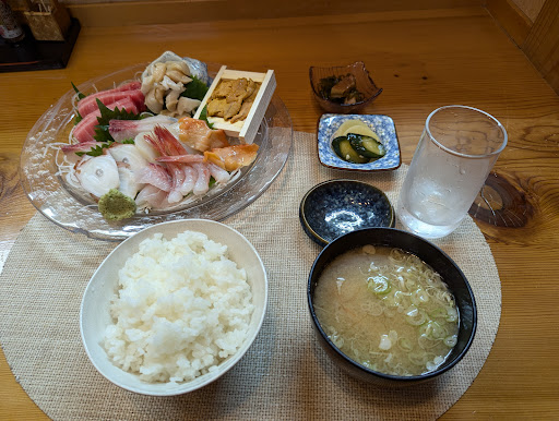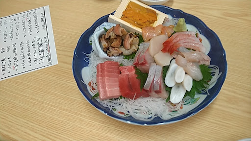 Read more旅の最後にレストランを探してGoogleマップで星5だから入りました 正直星5は疑ってましたけど、めちゃめちゃ美味しくてリーズナブルでした 写真は刺身定食の刺身2人分です。夏なのであまり地場の魚はいなかったかもしれませんが?ウニと中トロが絶...