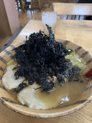 麺は一般的なちぢれ麺で、特に可も無く不可も無くと言った感じなんですが、クセが無い分大量の岩のりと絡めて食べるとすごく美味しいです。