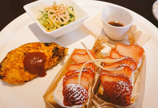 Read more一人旅の時に朝イチでお邪魔したオシャレで小さなカフェ。カウンター席から見えるキッチンのディティールがすごく素敵で思わず見入ってしまった。 朝から気持ちの良い挨拶で迎えてくださった店員さんにも感謝。モーニングでイチゴのオープンサンドを注文。オムレツ、サラダ、オープンサンド、どれも絶品。セットで紅茶を頂いたがこれも美味。食後に別途でカフェオレを注文しました、美味しかったです。 自分は県外の者で、再来店の機会は少ないですが、近所に寄った際には必ず来店します。...