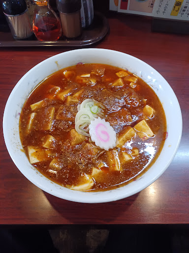 人気の麻婆麺800円を口頭注文。 スープが赤い、唐辛子の辛さと醤油ベース、豆腐は絹で餡は強め、挽肉普通、山椒が上からかかってて、ピリ辛シビレ風味のネギ少なめ。 ナルトがはいって珍しい。