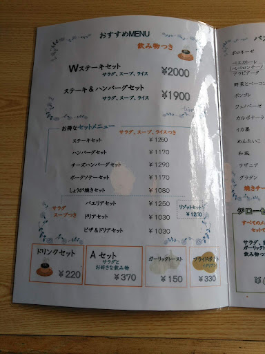 ピザとドリアのセット?のピザは冷凍食品レベル、ドリアはご飯にホワイトソース掛けただけみたいなものだった。 セットには含まれないコーヒーも頼んでみたけど美味しくなくて、全くいい思いができませんでした。