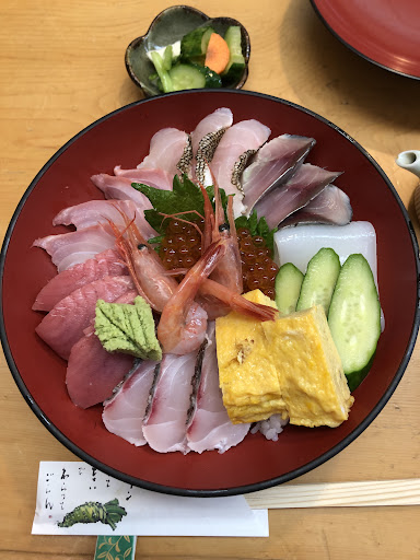 Read more新潟市から長野方面への長距離移動の途中に海鮮丼モードになったためよらせていただきました。 お品書きをみたら、海鮮丼(写真:1800円+税)と特選海鮮丼(3800円+税)がありました。金額に差がずいぶんあったので迷いましたが、ふつうの海鮮丼を注文しました。 結論をいえば十二分でした。中トロ、カンパチ、白身、アジ、甘エビ、イクラ、イカと数の子の和え物、玉子焼といったネタが器に隙間なくならんでいます。一切れも大きいし、なにより美味しい。アジなんかまったく臭みありません。わさびは風味よく甘みを感じるおろしたての本わさびでした。 これで1800円なのだから、特選はどれだけスゴいのかと思います。 なお、評価は料理は文句なく☆5なのですが、大将が従業員の方に説教しがちなところで☆を1つ減らしました。締めるところは締める必要はありますが、客商売なのでそこはお客さんの前ではぐっとこ...
