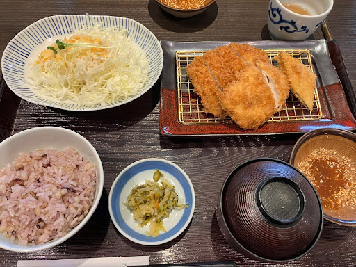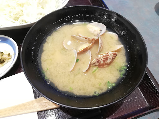 【The clam miso soup is delicious】 Eat a roasted rice bowl (wheat rice). There was a feeling of volume and I was very satisfied. I really want to eat white rice, We cannot beat the approaching annual wave, and we have no choice but to choose healthy barley rice. The barley rice is delicious when you get used to it. However, when asked about the compatibility with cutlet binding, I have to feel a little unsatisfactory. After all, the compatibility between pork cutlet and white rice is exceptional. If the result of the medical examination is good, I would like to receive a little white rice as a reward. You can have a calm meal in the room with calm table seats. Good clerk support. Received Rakuten points and left the store with pay-pay payment....