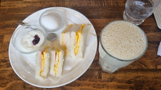 外観は可愛い感じで散歩途中に初めて入った。中はかなり暗かった、たまたまお昼前の空く時間帯だったのかすぐに入れて客もまばらだった。モーニング頼んだ、アイスコーヒーにサラダ、ゆで卵、トースト(半分の一切れ)で480円はまぁ世間並みだろう。ただ気になったのは接客してくれた年配の女性(多分ママさんだろう?)トーストかサンドイッチか迷ってると「トーストかサンドイッチどっちかです」とやや急かすように言う(私がそう感じたのかもしれないが)「じゃあトーストで」と頼んだ。先にアイスコーヒーが来て、少ししてプレートが来たが、「どうぞ」も「お待たせしました」も無く無言で置いてった・・.そしてレジ前の常連さんとヒマがあればペチゃクチャ澱みなくおしゃべりしてた。オーダー取りに来た時も感じたが、何かこの人はツンケンさがあり、感じが良く無い、店内の暗さと相まって嫌な雰囲気を感じた30分だった、「もう2度とは来たくない」と思った、悪口みたいになったがごめんなさい、私に合わなかっ...