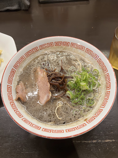 Read more黒豚骨、半チャーハンセット。 スープはとろみと苦味があり個人的に好きな方向でした!個人的にはこの苦味がコクのようでかなり好きですね。 ハリガネを頼んだがしっかり硬くて良かったです 近隣他店舗でハリガネ頼んでも柔らかいのが出てくるし。 ラーメン頼んだ人用の無料味変トッピングが相当色々あってこりゃあ大分いい。 他の方が言うように着丼前にトッピングだけ持って来た方が良いですね。 チャーシューは固めだが、噛んだ時の崩れ方に特徴あり。悪くない。