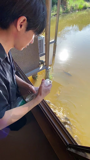 Read more和牛霜降ロースをセットでいただきました。 とても雰囲気が良く小旅行に来た気分でした。 鯉にエサ(100円)をあげることもできます。