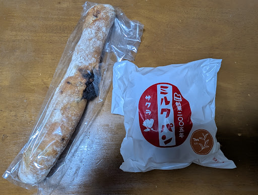 ショコラオランジェは…うーん、やっぱり硬いなぁ カットして霧吹きして、ちょっとだけ高温リベイクしましたが、クラストはゴリゴリ、クラムも噛み締めるように重たい ミルクパン(紅茶)は、かなり甘くてザラザラ感ある、昔ながらのクリームが挟まってます クンクンすると紅茶の香りするのに、食べると紅茶が居なくなっちゃう…残念