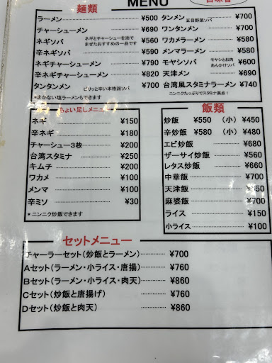 Read more🔫①昔からある昔ながらの中華そばの店 お昼時は近くの会社の人、19号線を走る途中で寄る人 常連さんらしい人も沢山いた 初めはここの近所の目上の人が美味しいと言っていたので来て、たまに食べたくなって寄るのだが あっさり鶏ガラが効いた中華にかん水多めの黄色がかった近くの近くのちぢれ麺、まさに昔ながらの中華そばって感じで飽きのこない味! チャーシューも好きなのでチャーシュー麺にして大盛りで食べた! 他の人達はラーチャー食べてる人がほとんど これは炒飯置いてあるどこのラーメン屋でも同じか 昼から1品料理で1杯やってる人も居たなー羨ましいわ
