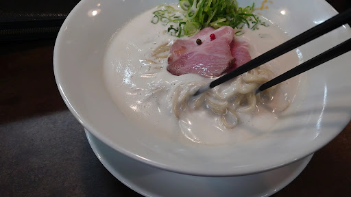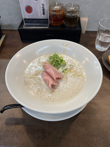Read more濃厚豚白湯らぁめん。特製盛り。スープが中々美味い!良くある鶏白湯と違って後味が甘く無く、貝系に似たちょっとスパイシーな感じに思いました。豚だけでこうなるのか、、個人的にはこの後味は好きな方向でした。 麺は硬さは選べませんが程よい硬さに感じました。 煮卵はしっかり味がついており、味自体は普通に美味しいかなぁ位ですが、キミのトロトロ具合もヨシ。 レアチャーシューは嫌な臭みは少なめで、食感も、割とほぐれやすいと言うか悪くない感じでした。 角煮は中々の食べ応え!食べ応えのある部分と一部トロッとした部分がありました。 ブラックペッパーオイルは中々面白い。 普通の箸、割り箸もアリ。 店内は清潔、隣とも狭さは感じないかな。 オペレーションはまだ慣れておらず、提供もかなり遅く感じました。ここらへんはこれから期待か。 電子マネーが使えたら嬉しいなぁ。 特製盛りだと1550円かあ、ぐふ!!中々いい値段だ、、食べ応えはあるけど。 近隣の鶏そばわたるよりは断然こちらの方が個人的には好き。
