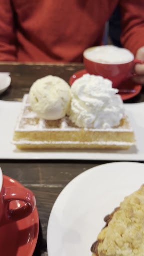 ここのワッフルが美味しいって見て訪問🚙 ワッフルの本場ベルギーの ブリュッセルワッフルが食べれるお店😉 ワッフルの提供時間は14時からみたいで 待ち時間にミックスサンドイッチを注文✍ タマゴとキュウリのサンドイッチは たまご・きゅうり・レタスが入ってて ごまの入ったパンは軽くトーストされてた💕 粗めに潰した塩味のあるタマゴサラダが めっちゃ美味しかった🐣 ブラックペッパー?か何かのパンチも効いてた♡ ハムレタスサンド?は ロースハム・トマト・キュウリ・グリーンリーフ・オニオンが入ってるって書かれてたけど、 グリーンリーフとオニオン入って なかった気がする🤔レタスは入ってた🥬 ハムレタスサンドの方のパンは ノーマルの食パンだった✌ パンはトーストされてるから少し硬めで ふわふわ感やもちもち感はなかった🙇♀ ワッフルは14時から注文可能🙆♀🧇 13時頃着いて、先にサンドイッチ食べてたから だいぶお腹いっぱいだったのに、 ワッフルが想像してたより大きくてびっくり👀 めっちゃ軽いけどお腹にたまる感じ🫠 外サクサク、中はちょいとろとろ🤩 卵かな?生地にフレンチトーストみたいな 甘みがあってめっちゃ美味しかった☺ 生クリームもたっぷりで、 ケーキの生クリームみたいにめっちゃ甘くて ここの大好きだった🫠🩵 飲み物とセットで頼むと100円引きだった✌ 今回は...