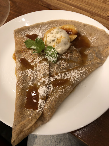 2023.6/24…勝川プラザホテルでスウィーツ後、歩きながら、より近い「アマイカ」へTEL。 しかし 予約満席で、自動的に?此方へ。 此の日の蒸し暑さ故、ランゴオショコラは食べる気がしないのを見越した事も有り、事前にスウィーツして来たが・・。 此の店では初となる、(焙じ茶)ティラミス。 焙じ茶は 今は苦手ではなく、且つ ティラミス。 ちょっぴり 後悔の念を抱きながら オーダー。 其の代わり、シーザーサラダをハーフで。 そして、大好きなガレットをセレクト(生ハムとルッコラのシチリアーナ?)。 ルッコラがハンパない量 故、先程のサラダは ハーフとは云へ、合計では かなりの野菜量。 此の日は、ランチタイムの店でも 此の店でも、「体の中から ちょっぴりキレイになったみたい♥」と云ふ気分に満ち溢れる。