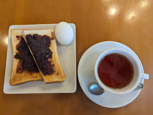 Read more初のモーニングを体験するため、会社近くの喫茶店を利用しました。 店は駅から3分ほどの高蔵寺駅前商店街にあります。席は15席程度で夫婦で切り取りされている個人経営店かと思います。 モーニングは3種類。玉子サンド、トースト、小倉トーストから選び、それにドリンクとゆで卵がついて430円でした。 店内は静かで、私が利用した時は、先客は2名ほど。おそらく定番のモーニングで、よくメディアが取り上げているボリューミーな内容ではありませんでしが、私的には十分な量でした。 ...