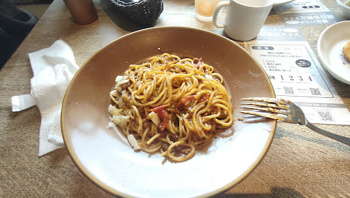 以下2024年 お盆休み中のランチに席を予約(12時30分)して家族で訪問しました。靴は入店時に木でできた鍵つきの下足箱に入れて 入ります。一番奥の座敷に案内されました。店内の配置としてはメイン通路に【ドリンクバー・ほぼ店の中央に焼き立てパン】が配置されており、通路幅が狭いので込み合いやすいです。 ただ、来店時は9割程度埋まっていましたが、パンの焼きたてを知らせるベルが鳴らされたとき以外はそれほど混んでいませんでした。 パスタの注文は店員さんを呼び、注文するスタイルです。【セミドライトマトとペコリーノチーズのボロネーゼ】 【厚切りベーコンのカルボナーラ鎌倉風(フィットチーネ)】 【ぷちぷちたらこの濃厚クリームパスタ】 【うにとぷちぷちたらこの濃厚うにクリームパスタ(写真なし)】を注文しました。 まず、ボロネーゼは絶品!!!とても濃厚な味ながら、飽きることないお肉の味、味、味。濃い味が好きな方に本当におススメです。少し濃い目に感じる方もいるかも!? 次にカルボナーラもこれまた濃厚。厚切りのベーコンがなくともチーズの味が最後まで楽しめます。カルボナーラはフィットチーネに頼むとチーズの絡みサイコーです。(娘がベーコンがすべて食べていたので・・・わかりませんが、しっかりチーズに油が溶け込んでおります) 最後に私が頼んだ【ぷちぷちたらこの濃厚クリームパスタ】 クリームソースでまろやかになっているにも関わらず、たらこの量があり味もしっかり感じられるタラコ好きにはたまらない一品。切った大葉が散りばめられており、いいアクセントになっています。 こちらのパスタはどれも味がしっかりしており、また違うパスタを食べに来たくなる味です。 パンは小ぶりですが、食べ放題で食べ過ぎてしまいます。みんなおいしいでが、私は枝豆のパンをおススメします。枝豆の味がしっかり感じることができる珍しい組み合わせなので、一度は食べてみてください。もちろん他の焼き立てのパンもおいしいですよ。 最後にドリンクバーのジュースは、炭酸などはなくピッチャーで入れるソフトドリンクになっています。 アイスコーヒー・紅茶・野菜ジュース・オレンジジュース・カルピス・グレープフルーツジュース。機械で入れるホットコーヒーなど数種類ありました。 女子率高いお店ですが、男子もぜひ、大盛もでき、おなか一杯になれるお店なので訪れて...