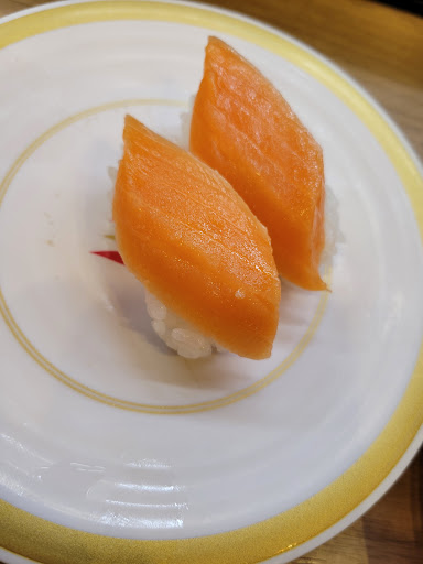 しかし祝日の18時頃でお店はガラガラ。 予約の必要もない程お客さんがいませんでした。 メニューの写真と実物は全然違うので気をつけた方が良いです。 というかまず、運ばれてきた時点でシャリからネタがずり落ちてる時点で食べる気失せます。 あのレーンそんなに高速なのか? そういう問題じゃないと思うけども。 一貫で150円皿のエビがその状態だっただけで信用性ゼロになりました。 いくらも倍量で300円皿でも普通にシャリ見えてる。海苔はしなしな。 もう100円以上の皿食べてもクオリティ低すぎて無駄だと思いました。 一貫55円で頼めるメニューもあるのでそれでお試しした方が安心できるので途中からそうしました。