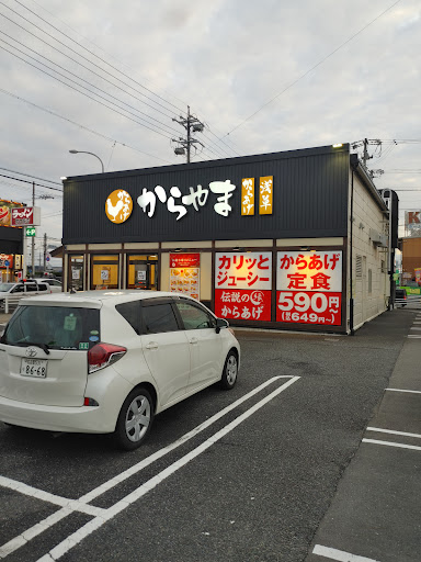 2021.3.27行ってきましたー なかなか通らない方なので行くのが遅くなりましたがやっと行けました 駐車場はめちゃめちゃ広いです 喫茶店とからやまの駐車場が一緒になっていて、第2駐車場まであるので、かなりの量の車が停めれます 自分は10時31分につきましたが既に数名、お客さんが先にいました 駐車場も大量に車が停めれますが10時、31分の時点で既に、駐車場はかなり埋まっていました 大半は、喫茶店のお客さんの車だと思います からやまのレビューになりますが コロナ関係で、入り口に消毒液があります 今時には珍しく券売機ではありません 席についてメニューがあり、決まったら店員に注文します メニューの種類を少なく定食か丼物、あとはテイクアウトメニューが少しある程度です、迷わずすぐに決めることができます 自分の時は感謝祭だったので、定食が税込み550円で注文できました 唐揚げはプレーンでも少々味が付いていて、薄口が好きな人はそのままでも食べても美味しいと思います タレは一つはゴマだれ、にんにくが少し入っているかは分かりませんが、それ系のタレです もう一つは甘辛ダレです 物凄く辛いというわけではないので、お子様でも食べれる辛さレベルではないかと思います唐揚げの衣は表面はサクサク、中、ジューシーです ご飯は無料で大盛りにできました あとは備え付けで塩辛なども無料で付いてきます 自分は塩辛が大好きなので、とても助かります 自分は唐揚げ定食を頼みましたが付いてくるお味噌汁はとろろ昆布も入っていて お味噌汁も手が込んでいました 自分は感謝祭の時に来たので安かったですが、本来いくらなのかが分からないので気になりました 味は十分問題ない、美味しさです 従業員が自分の時は女性4人しかいなく かなりテイクアウトのお客さんが多いみたいで4人ではかなり大変そうでした 自分が食べてる間、厨房を見ていましたが、かなりのテイクアウトの量でテイクアウトのものを準備するのが手一杯で、店舗のお客さんまで対応するのが難しそうでした少なくても5人以上は必要な店舗だと思いました 忙しい時間帯に行くと、もしかしたらまたされるかもしれません テイクアウトされるのであれば、電話予約をしてから店舗に伺うのが良いかと思います 写真も数枚撮ってきましたので、ご参考...