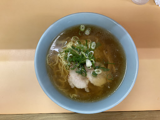 昼時に伺いましたが、カウンターとテーブル席のこじんまりとしたお店で、老夫婦と娘さんらしき3名体制で切り盛りされていました。カウンターに通され辺りを見渡すとカウンターの上に短冊上に書かれたメニューがあります。一番右側からラーメンメニューがあり、途中に定食メニュー最後に飲み物となっていて更に壁にも何枚か注文できそうなメニューがあります。今回は塩ラーメンを注文します。