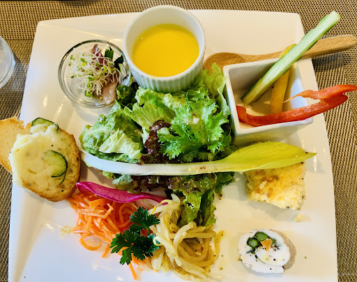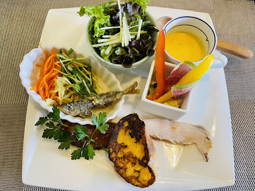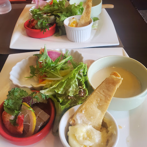 Read more1480円のランチをいただきましたが、正直どうってことありませんでした。 前菜は5品ほどワンプレートで出てきましたが、良いのは彩りのみで1品づつのクオリティーは無いです。(美味しいと思うものはなし) メインは豚肉でした。まぁ美味しいけど1480円のランチとしては…普通です。 パンorライス選べますが少ないです。バケットも普通です。男性では満足できませんね。女性の分量です。 これにドリンクが付いてのランチでした。