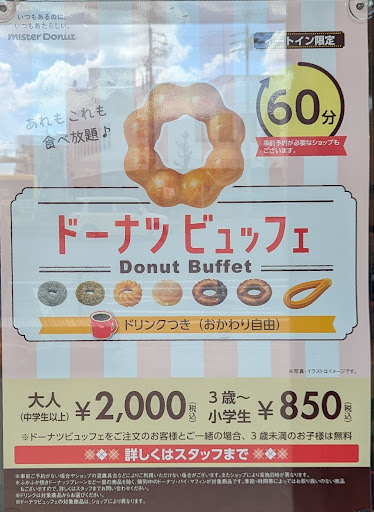 また、期間限定品を含む、店頭のドーナツ全てがビュッフェの対象となる。