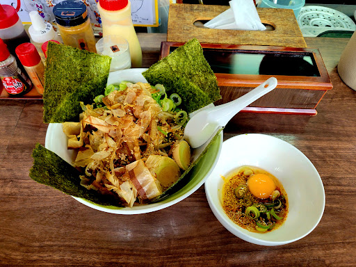 2021.10.2行ってきましたー ほんまは昼くらいに食べたかったけど 土日は9時からやってるらしく レビューも評価高かったから並びたくなかったんで9時には着くように向かったさー 自分らが着いたのが9時5分くらいで既に中に3人くらい客がいてワンオペでやってた だから自分らが入った時にはその3人のを一生懸命作ってたからなかなか注文すら聞かれず 一緒に言った人がもう帰ろうよって言い出すくらいかなり待たされてから注文やっと聞きに来た まぁ先客の3人の作り終わってから来たんだろうね 知り合いは中華そば 自分はまーチャーシュー全部のせ さてレビュー中華そばは魚介香るってなっててスープ寄りの中華そば 知り合いは醤油よりが好きなため口に合わず少し食べて終了煮干が内蔵処理無しで出しとってる感じで苦味を感じるとの事だったまぁこれは魚を内蔵まで食う人と食わない人に別れる好き嫌いによるかな まぁ苦味を感じるタイプだったんでダメだったみたい さて自分のまーチャーシュー全部のせ まーラーメンが坦々麺風ってなってるんやけど んー坦々麺からは程遠いから ある意味オリジナルまーラーメンだよ ゴマは入ってるからごまラー油ラーメンだね 後なぜか全部のせで水餃子入ってる なんかほかの店の全部のせとは質が違う 他にはないから面白いけどありがたみは無い 水餃子いらんし全部のせのないようがナルトとかもはいってるんやけど 全部のせのメニューにナルトはアカンやろって思う んで、味はちょいまず ラー油とゴマだけで味は?って感じる チャーシューは普通だったけどチャーシューも劇的にうまい訳でもないし まーチャーシューに更に全部のせにしたんだけど劇的にチャーシューが増える訳でもない レビューが高かったから行ったんだけど んーどれを注文したらせいかいだったんだろうか? 自分は二度と行かないけど気になった方はどうでしょうか? 写真数枚撮ってきましたので参考...