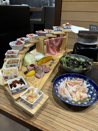 ⚫︎15品肉の階段盛コース 5,500円 ・国産牛カーテンロース ・霜降り生タン〈厚切り〉 ・とんたん ・塩牛ホルモン ・味噌牛ホルモン ・やみつきとんちゃん ・こりこりタン先 ・厚切りダイヤモンドハラミ ・3種のカルビ(タレ・切り落とし・味噌) ・ネギ塩ハラミ ・上ハラミ ・自家製白菜キムチ ・本日のナムル(もやし) 鶏塩3種盛り チョレギサラダ 釜炊きご飯 ※ソフトドリンク・アルコールの飲み放題付 ⚫︎炙り肉寿司盛り 1428円