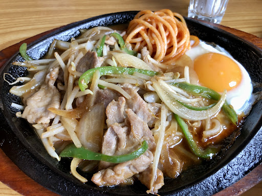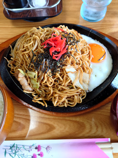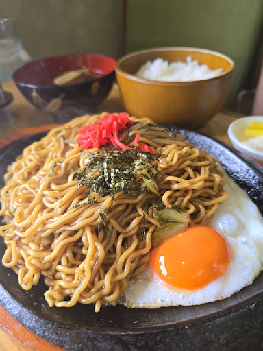 Read more平日11時30分頃訪問。 店内はテーブル席です。 ちょっと和テイストな変わった雰囲気✨ 焼きそば定食700円、麺大盛り+50円を注文🎵 このご時世かなりリーズナブルだと思います‼️ 鉄板に焼きそばと目玉焼きがのった熱々の焼きそば✨ ライス、味噌汁、漬物が付いてきます✨ 焼きそばは少し柔らかめの麺で、味は丁度良く美味しい😁 ソースも付いてくるので、濃い味好きの方は足すといいと思います。 リーズナブルでボリューム満点なので、ガッツリ系の方にオススメです✨ 店員さんも親切丁寧な対応でした✨