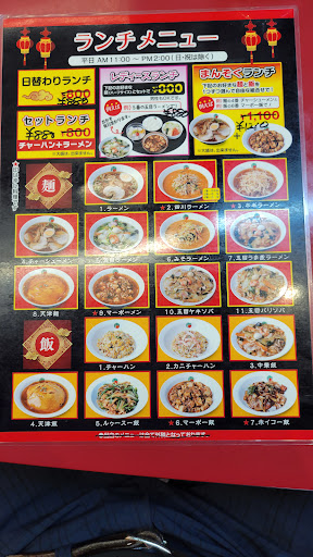 かなり昔に来たこと有りますが、記憶に遠いので、印象は忘れましたが、久々に行ってみました。 店内に入って、空いている席も有りましたが、忙しそうにしている感じで、提供にお時間がかかると言われましたが、知れているだろうと思い案内してもらいました。 着席して、普通のチャーハンと鶏チャーハンとエビマヨハーフを頼みましたが、待っている間に周りを見てるとお客様さんは常連なのか、お馴染みみたいな感じで接している人が結構いる感じでした。 そこそこ待って、炒飯が来て、食べてみまして、ちょっとギラついた感じの素材の味のみな感じ……塩味、コショウの味付けがしてある感じは無く、優しい味と言えば良いのか、鶏は鶏その物の味しか感じられなかったです。 普通のチャーハンも味見しましたが、鶏が入ってないだけなので、同じ感じでした。 塩コショウ忘れられているのか、そういう物なのかは分かりません……。 エビマヨは確り味も有り、普通に美味しい感じでしたが、ハーフなので小皿に4尾で、会計で発覚しましたが950円でした……高っ! ハーフの値段は書いてないですが、普通に頼んで1600円するので、その辺の中華料理の倍の値段くらいする感じだね! まぁ、普通のチャーハン以外が950円するので、全体的に高い感じです。
