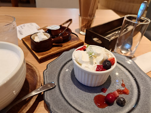 2025.8/8…終業後、週末を利用すべく、「のたり」でスウィーツ&ティータイムを楽しむ。 其の後、折角 近くに「三洋堂」が在る事だし と、足を延ばす。 其の途中、ふと 気になる店を見かける。 一旦 三洋堂で本を買った後、スカウティングすべく?歩いてゆく。 すると ヘルスィキッチンと云ふ、私には 看過出来ない 立ち位置の飲食店だと 思い知る。 直ぐ近くで 妖しく佇む「パチスリー フランケンシュタイン」は ともかく、色々なジャンルの魅力的な店が 渾然一体となった一帯だと、あらためて認識する。 取り敢へず 店の前のボードをチェックすると、スウィーツのヴァリエに カタラーナも存在。 先程のプリン屋さんで、(ロールケーキだけでなく)クレームブリュレにも未練タラタラながら、プリン ア ラ モードをセレクト。 デナーした店では、あっさり系の料理に終始した事も手伝い、自らに GOサインを出す。 入店して、スウィーツ&ドリンクだけでもOKと確認した上で、今夜第二のスウィーツタイム。