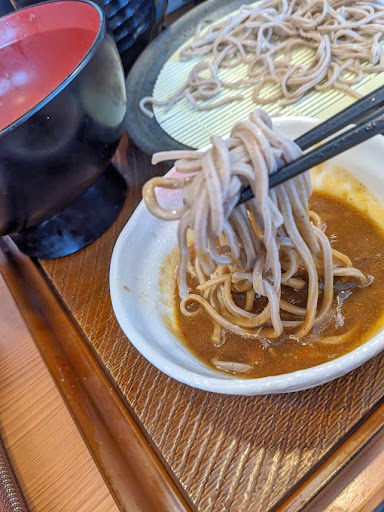 8分ほどで提供、前からタブレットごしに置いてくれるのかww https://youtu.be/xMA-4bBw2AE 流石の麺倍もりw インパクトあるなぁ。逆にかつ丼は少なく見えるぞw 肉の厚みは2cm弱かな。しっかりとした噛みごたえとカリッとした衣。トロトロの玉子も味が濃くなく優しい味わい。ちょっとつゆだく気味かなー 蕎麦は小麦粉多めじゃないかなー 喉越しは良いけど香りは控え目、でもボリュームがあるから許せるww 葱が少ない! 麺倍もりなら薬味も増やして欲しいなー ¥100で文句言っちゃイカンかw 最後にカレーを装ってきて、カレーつけ蕎麦にw...