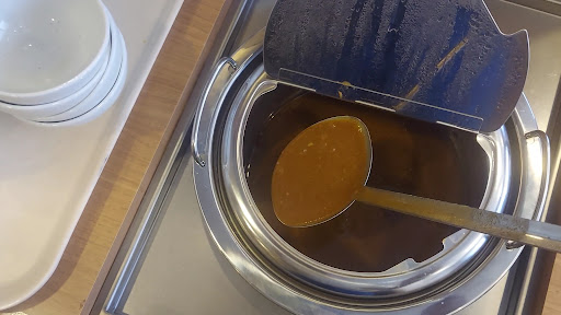そーいや、お冷が出ないねぇ。セルフかな?「すみません、お水ってどちらです?」訊いたらトイレを差し「あちらです」ん?? トイレの前がウオーターサーバーなのねww 目立つように看板付けといて欲しいなー 暑いお茶もあるじゃーん。え?奥にもテーブル席があるじゃん・・・皆こっちに居るのね。狭いカウンターにしなきゃ良かったww そっかカレーかけ放題もあるのね。カウンター席は落ち着かないね、目の前を店員さんが忙しそうに動きまわるのね。
