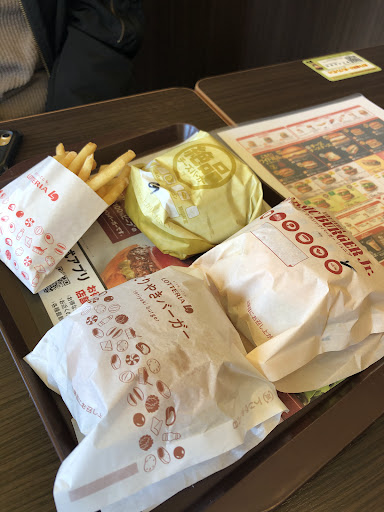 Read more夕方のすいてる時間にドライブスルーを利用。店が角に有りドライブスルー入口は店を通過後🅿から入る。駐車場を通過した奥がドライブスルーで長い車は切返しが難しいので、🅿にふつうに車を停めて店内で注文し車内待機でよかったと後で感じた。店員さんは対応が丁寧で内容も再確認しホットコーヒーにはミルク・砂糖の希望を聞き入れたものを渡してくれる。バーガー類が出来上がるまで結局車を🅿に停める事になるが「1番でお待ち下さい」と言われるも判りにくく(結局それは最初通過した🅿のうちの1つで番号は地面に記載されていたようだ)少し離れた正面に番号付き🅿があったのでそこの1番に停めて待っていたら店員さんが探しにきて確認すると隣接する教習所の🅿に間違って停めた事になっていた。 出来立てを食べられてポテトとオニオンリングは揚げたてで美味しかった。リブサンドポークを注文したがパテは以前に比べ黒コショウが強くパサッとしていた。多分この店がではなくロッテ...