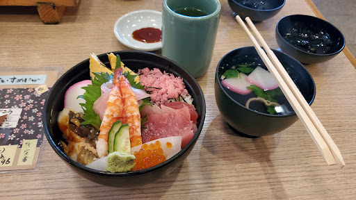 Read more誕生祝いということで 家族用に極上富士握りをテイクアウトで注文しました。 でも、ちょっと少ないかな?と気になったので 単品でホタテ、ネギトロ、サーモンを追加しました。 見た目、100円すしと変わらない気もしたのですが さすがに 極上のお味です。 とろけるおいしさがたまりません。寿司っていいなぁと。 ローソクは立てられませんでしたが 思い出に残る誕生日になりました。 特選チラシが食べたくて入店。お昼時なのに素早い対応でした。味は値段相応で特別感はありませんでしたが、店の雰囲気はいいです。平日のランチメニューがおすすめなので、日曜は避けた方がいいです。 今日はいつもの特選ちらしに シジミ汁にしてみました。 シジミ汁とても美味でした。+150円ですが、この価格でのおいしさと量は完敗です。次回は...