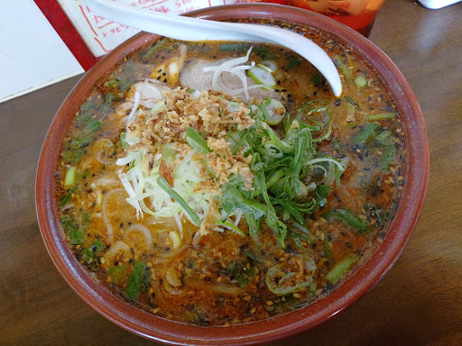 10倍はピリ辛って感じで、香ばしい味噌とゴマの香り、具沢山でコクのあるスープにゴロゴロ挽肉が旨い(≧▽≦) 沈んでいたチャーシューも柔らかくて美味♪半熟卵まで入っていて豪華絢爛ですな! モヤシやニラなど野菜もたっぷり、麺量も結構あり満足度の高い一杯です。