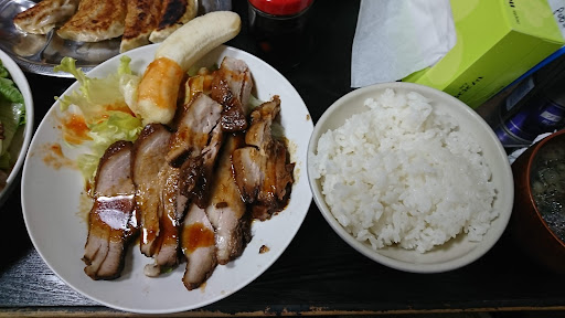 Read more知人の紹介で連れていってもらいました。住宅地の中にあり、お客様は地元の方がご飯を食べに来る感じ。駐車場は店の横の2番、3番の2台分がお客様用です。営業時間は10:57~7:57まで、ラストオーダー7:45です。火曜定休日です。営業時間の端数は験担ぎか、こだわりか気になるところですが。店内は決して広くはないが、4人掛けのテーブル席が3つ、壁に面したカウンター3席が2つ。天井にテレビあり、野球中継を流していました。店主は野球(松井?)好きらしく松井のサインがたくさんあります。典型的な中華料理やですがラインナップは少数精鋭。中華そば550円(安い!)、味噌ラーメンなどの麺類、焼肉定食や焼豚定食などの定食もの、餃子などのサイドメニューがあります。目を引いたのは辛味噌ラーメンのチャレンジ的メニューが、10倍、50倍、100倍と、辛さを選べます。もはや100倍がどんなに辛いのか想像もできません。写真は焼豚定食1000円。ご飯、味噌汁、小皿のヤッコ、キムチとメインの焼豚(バナナ一本)焼豚は自家製らしくホロホロで柔らかくとても美味しいです。が少々脂身が多く、最後の方は少し胃に負担が…。ガッツリ食べたい方にお勧めです。お持ち帰り用の焼豚もあるようです。味噌ラーメンも美味しいらしい...
