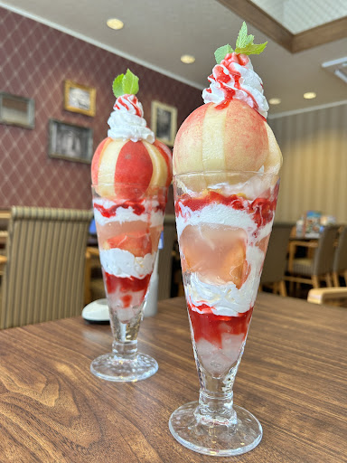 Read more季節のジョナパフェDXです。 桃がドーンと載ってます。 皮がついてるので食べ方が難しいです。 ビッグなサイズで値段もビッグ。 桃は生クリームが中に入ってるので、その甘さで桃の味が消えてしまっています。 味のない桃を食べてる感じ。 グラスの中にも桃があるけど、皮付きなので口の中でモゴモゴしながら皮を取りました。 子供のように手がベタベタになりました。 2025年8月、再来店。また桃を食べにきました。今度は小さいサイズにしました。また皮がついていたので、子供のように手がベタベタになりました。デニーズの桃より美味しいです。中には北海道ソフトクリームが入っています。ゼリーとコーンフレークと桃の果肉も入ってましたが、やっぱり皮付きで、口の中でモゴ...