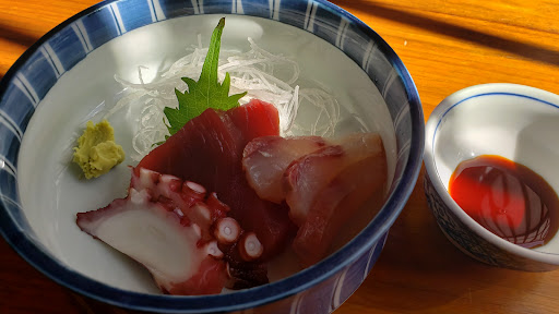 Read more駐車場は目の前にありました。 現金払いのみです! 釜飯は味噌汁とお新香が付いて1000円以内の物もあり安いと思います が、 お刺身と茶碗蒸しのセットにするとプラス1200円と極端に高くなる印象ですが、トータル的には普通なのかも… テーブル席も有りますが、広めの座敷もありますので小さなお子さんが居ても気軽に食べれる和食屋さんです。 釜飯はお焦げも...