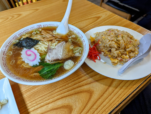 ラーメンとチャーハン 昔ながらのラーメン。ラーメン専門店のようなインパクトはないですが、昔に屋台で食べたような、学食で食べたような懐かしい味。麺のゆで具合やほんのりした甘みが好きです。チャーハンはパラパラしっとりの美味しいやつでした。