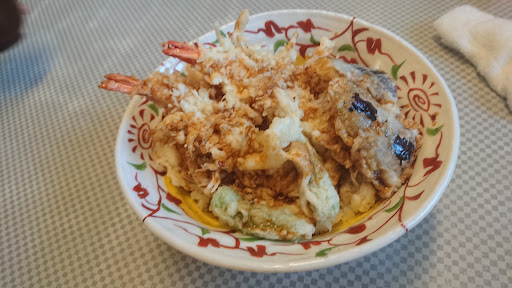 おまかせ寿司や海老穴子天丼等々をオーダー。 寿司ネタ生モノは美味しかった。 天ぷらのアナゴは丼からハミ出すくらい大きく(大き過ぎ^^;)衣はサクサクでしたが少しダマが多かったので△。 デザートのプリン🍮はフワフワで旨かったです。