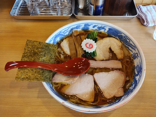 Read moreワンタンメンの食券を購入し、カウンターに着席。 目の前には、冷タンと香辛料が置いてありました。 冷タンはとてもきれいで輝いていました。 カウンターを見ると、とても清潔感があるようです。 しばらくすると、ワンタンメンが着丼です。 写真で見た通り、透き通った醤油ベースのスープに油が少し浮いている感じです。具はシンプルで飾らない感じです。 正道を行く感じで好感持てました。 スープはさっぱり系でしょうか。好みの分かれるところです。 私は、香辛料とくにホワイトペッパーが好きなので少し多めにかけて マッチングもかなりいい感じでした。ただし、後味からするともう少し濃いめも希望ありもわかります。特に関東圏の人は。醤油ベースの追いスープが選択で在ってもいいと思いました。 麺は手打ちを謳うほどで自信ありと思います。 喜多方を思わせるまたは竹打ちを思わせる麺ですが、時折ぶつぶつ切れるところがあるので少し残念でしょうか。 ただし、閉店1時間前だったので麺の状態も完ぺきではないでしょうね。 生き物ですから。 ご夫婦でしょうか。二人で切り盛りしているようですが、美男美女です。ラーメンの気配りを感じる清潔さと美意識を感じました。お若いのにプロの職人気質です。ぜひ頑張ってもらいたいです。 今度はかみさんと子供を連...