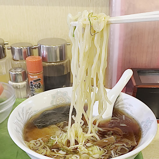 メニューの説明通り、醤油スープに塩味の餡掛けがかかっていて、あっさり醤油スープにコクとパンチが加わります。 少し硬めに茹でられたストレート麺が美味しい(´ω`)