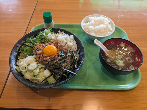 今回は前々から食べようと決めていた永遠のスタミナまぜそば税込913円をお願いしました。出来上がりまでしっかり10分は待ちました。まぜそばは写真の通りかなりのボリュームでテンションが上がりました。特筆すべきは追い飯の量です。同じ市内のマル◯ン本舗で同じようなまぜそばを頼んだらレンゲにちょんとご飯が乗っかっているものを差し出されて愕然としましたが、こちらは大盛りのライスがどーんと出てきて嬉しさ倍増です。しかもワカメとおネギがたくさん入った熱々スープまでついて1000円以内なんて、原材料高騰中の今のご時世で最早感動すら覚えました。