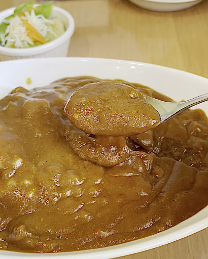 噂のカレー大盛を食しました。 サラダとドリンクが付いて税込900円でした。 ドリンクはアイスコーヒーにしました。 サラダはキャベツの千切り、レタス、ニンジンなどに和風ドレッシングがかけられていました。 カレーライスの具材はポーク、玉ねぎ、ニンジンなどで福神漬けが添えられています。 カレーはダークブラウン色でとろみがあり、口にするとコクと旨味があり、ほのかな甘味とともにピリッジワジワとした辛味がきます。 福神漬けのコリコリとした食感と甘味も良いです。 ライスの炊き具合も良く食が進みます。 アイスコーヒーは爽やかな酸味とともに苦味があり、風味と味わいが良いものでした。 リーズナ...