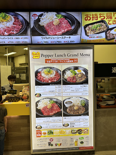 Read moreサーロインステーキを食べたが肉が固くて筋張ってソースも不味かった。 二度とこれは食べないだろう。 次にカルビ丼を食べたが同じフロアのヤマキの方が100万倍美味かった。 二度とこれは食べないだろう。 次にジューシーカットワイルドステーキを食べたがこれも金返せってレベルで不味かった。 サラダは乾いてカットの仕方も雑、不味くて高いコスパ最悪の店。 同じ金額を出すなら他のステーキ専門店に行った方が遥かにいい。 最後に食べた時にクーポンを貰ったが社名を見て納得した。 ペッパーランチは高くて不味いという...