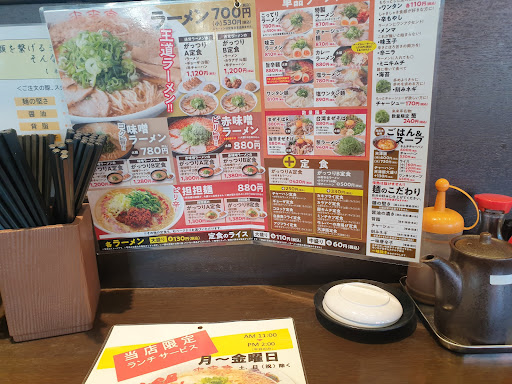 Read moreそこまで混んでいなかったので来店 スムーズな案内、元気の良さは満点。空いてるカウンター席に ラーメンと豚キムチとごはんのセットを注文1000円ちょっと ラーメンは醤油の濃さや背脂の量。味の濃さ、ネギの有り無し、一味の有り無しなど色々自分好みにカスタマイズできるのはポイント高い 背脂系のラーメンが食べたかったので背脂多めに 一蘭のラーメンに近い味わい。一味がそう感じさせる。ラーメンのスープ自体はあっさりめ。背脂のくどさや臭みはなく食べやすい。 ストレートの細麺だが麺の量が少なく感じた。豚キムチは油っこくくどい。ごはんは若干少ないかなと。 麺自体が細麺だからお腹いっぱいにはならなかった。 味や麺自体は好みで美味しいが量が少し足りない。1000も出すのはどうかなと言う位には物足りなかった。 替え玉はできなさそうだが麺の大盛りとご飯の大盛りをプラス料金でできるみたいだ。 麺の大盛りはかなり多めなので細麺でも注意が必要。特に少食の人は。 背脂と細麺好きにはオススメの場所、メニューも豊富 店内が忙しいと会計を...