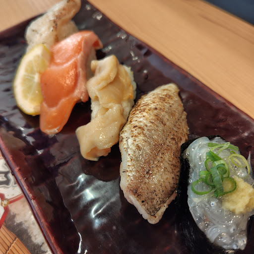 アワビの食感が特に絶妙でした コリコリっと、甘みも👍️ 生サーモンは余分な脂がなくて、 新鮮さが伝わる甘みが美味ですね〜、、